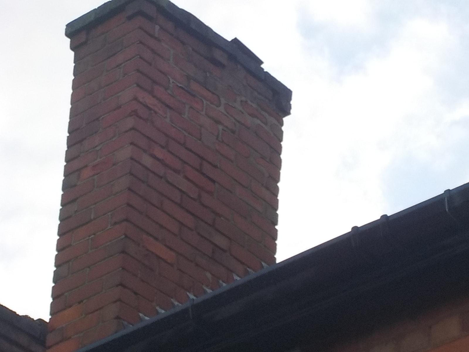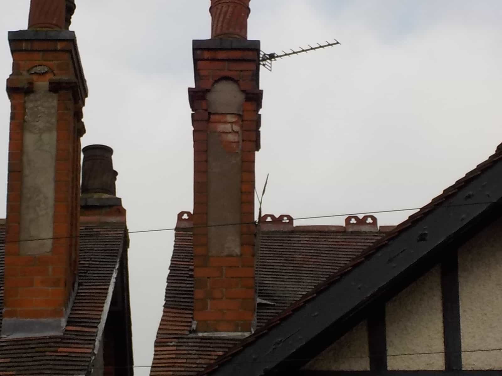 The render has probably been added to hide bricks that have lost thier faces or pointing from frost damage with due to rainwater soaking into the chimney or condesnates of combustion soaking into the interior. Although not disernable the chimney leans slightly probably due to expansion of sulphates in the mortar.