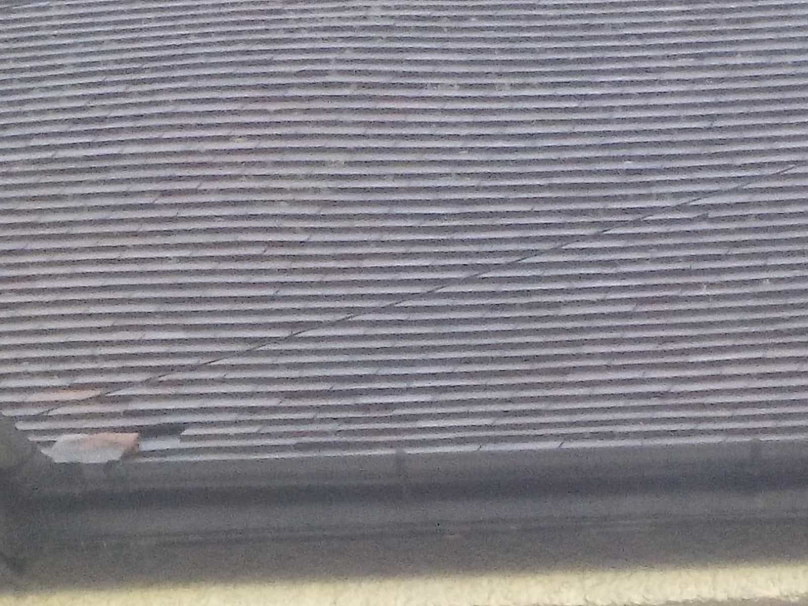 A lost tile and dishing of the face of the roof. The latter is caused by inadequate horizontal timbers that support the rafters