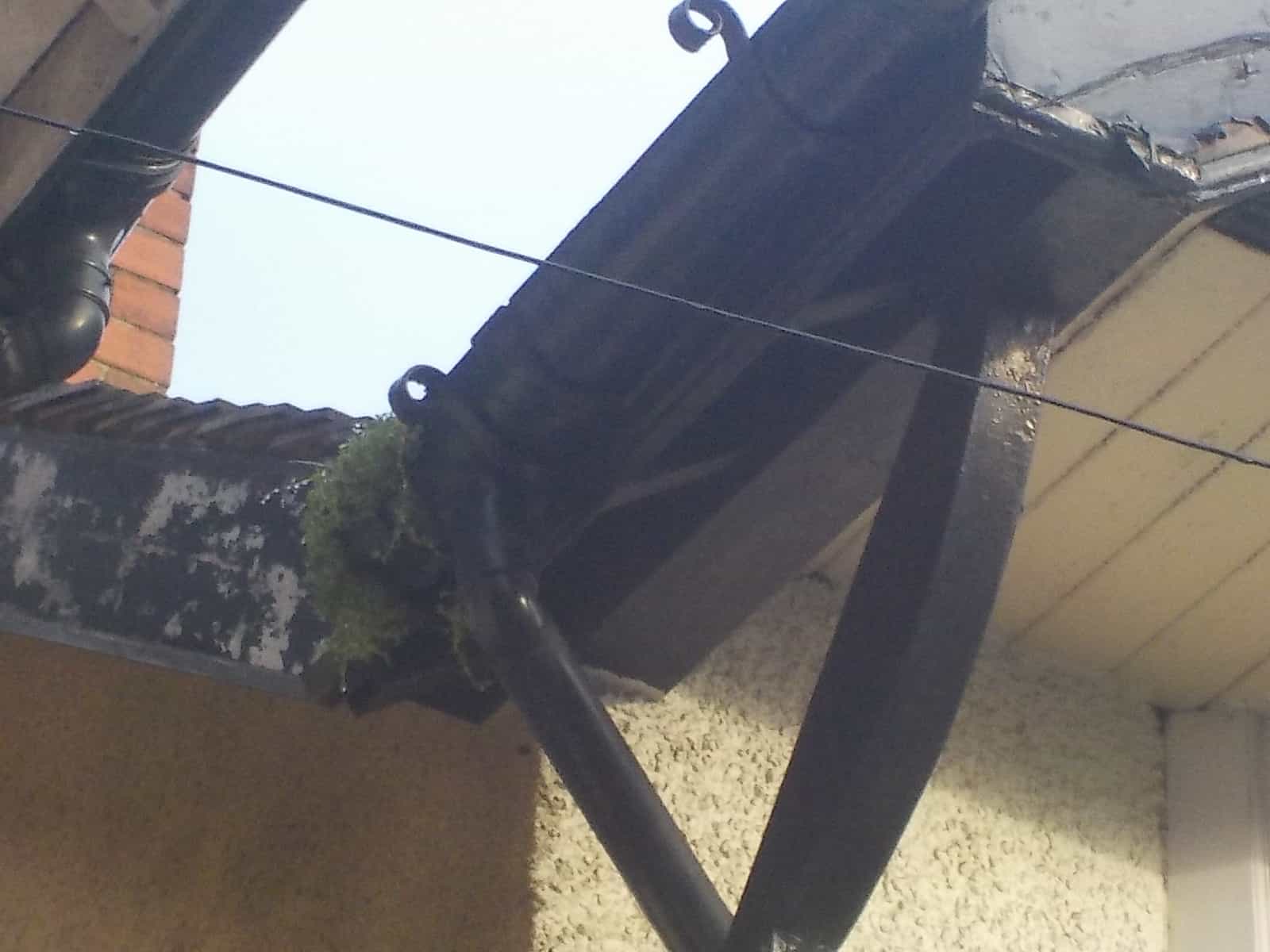 Vegetation in a gutter. Usually a sign that it is collecting silt due to a poor fall.